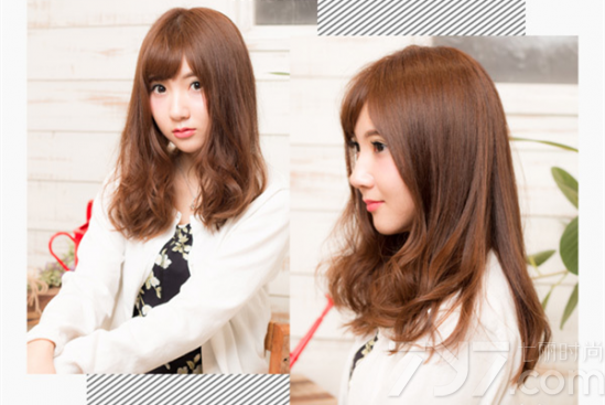 发型点评:甜美元素的减龄中长发可是不少女生的最爱,微微分斜的刘海搭配金铜色发色搭配,不仅可以突显白皙的肌肤,而且充满十足的时尚气息。