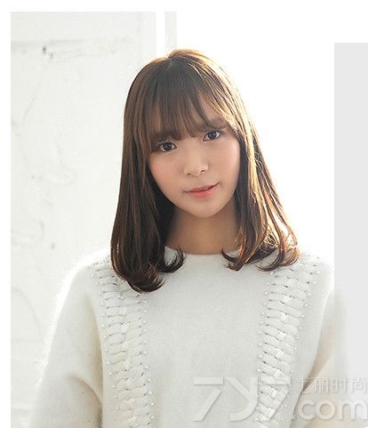 发型点评:清纯学院风味的这一款齐肩发型很适合25岁mm扮嫩,从而带到一个减龄的作用。搭配韩式流行的空气刘海,倍增甜美气质不说更是带出女生一双灵动的双眼;再将发尾进行内扣烫卷就个性有范儿。