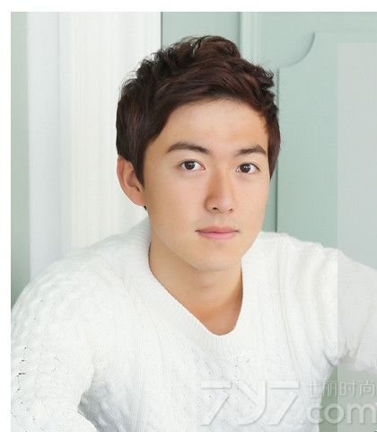 时尚看点:深棕发色的这款韩国男生发型彰显出男生低调与稳重的一面,将蓬松的烫卷刘海定型在额上,可以露出饱满的前额与清秀的脸蛋与立体的五官,让男生变得更加俊秀帅气。