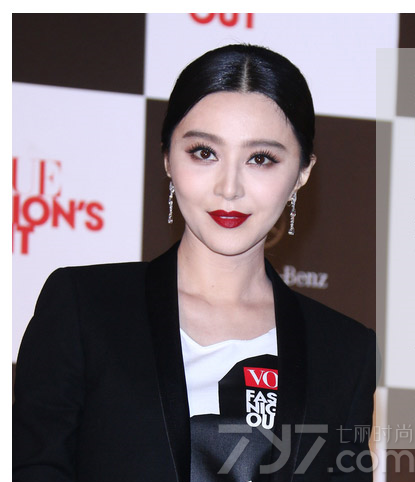 中分发设计的这款低马尾发型让范爷看起来十分具有强势气场,加上一抹大红色口红与酷酷西服的搭配,瞬间就惊艳全场,同时展现出范爷事业女强人的一面。