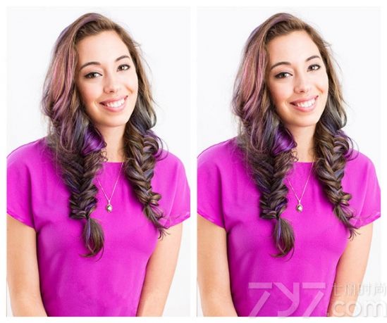 时尚看点:双鱼骨辫编发的这一款欧美风发型可谓是十分的精致特别,蓬松感的打造让鱼尾辫变得饱满与特点,加上时尚的挑染效果,更是倍增整个造型时髦与个性范儿。