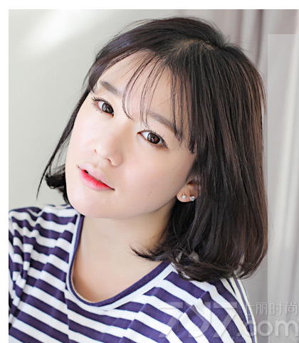 发型点评:黑色系短发搭配若有若无的空气刘海,不仅把整个光洁的前额都坦露出来而且还倍添清新清纯范,加上微微内扣的发尾设计之后就更是美腻了。