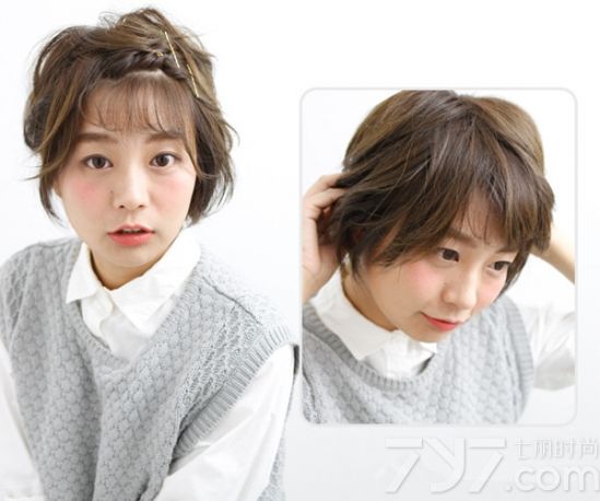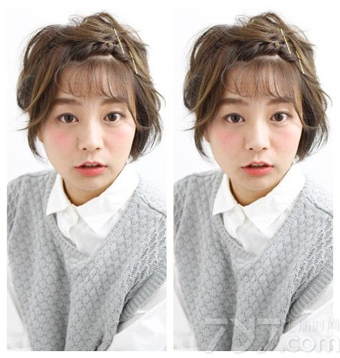短发妹子的总能给人一种可爱与俏皮形象,而这样的形象不仅要靠穿衣打扮更要靠一款不错的发型,下面小编带来了一款短发刘海编发教程图解,来教大家如何打造出一款倍增自己形象的气质美发型。
