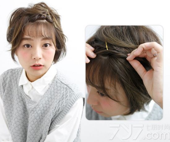 短发妹子的总能给人一种可爱与俏皮形象,而这样的形象不仅要靠穿衣打扮更要靠一款不错的发型,下面小编带来了一款短发刘海编发教程图解,来教大家如何打造出一款倍增自己形象的气质美发型。