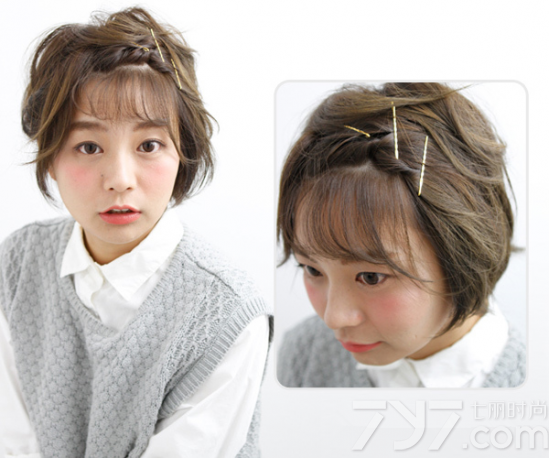 短发妹子的总能给人一种可爱与俏皮形象,而这样的形象不仅要靠穿衣打扮更要靠一款不错的发型,下面小编带来了一款短发刘海编发教程图解,来教大家如何打造出一款倍增自己形象的气质美发型。