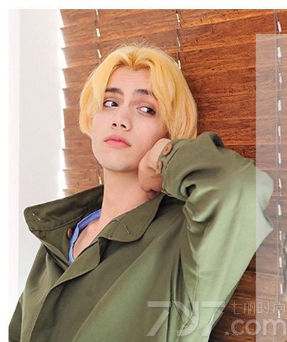 搭配金黄色的这一款男生发型让看起来十分显个性感,同时也给人一种混血儿的感觉,加上中分发的设计与金黄色染发的呼应,轻松之间就带出了男生潮范的气质。