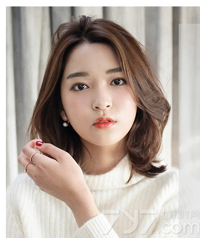 微卷外翻发尾长刘海搭配简约齐肩发型,可以在视觉上增宽了瓜子脸的颊骨,使得脸型不再是瘦弱不堪,而是看起来更加丰润饱满与有气质。