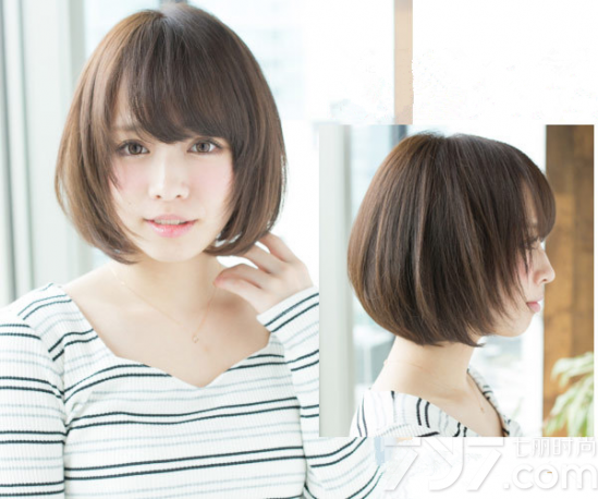 及眼的刘海搭配直中短发造型不仅给人清新的感觉,而且能打造出超美的小脸;加上两边服帖的头发更是帮助女生弱化脸颊肉肉,使得脸型在视觉上更加清新显小。