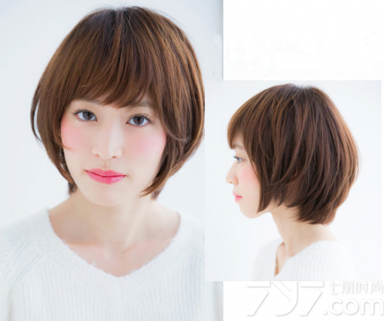 稍显干练的这款齐耳发型在棕色染发的搭配下多了几分清新感,两边服帖在两颊的头发可以帮助mm们起到良好的修颜作用,而那斜刘海的搭配更是带出了一双灵动的双眼。