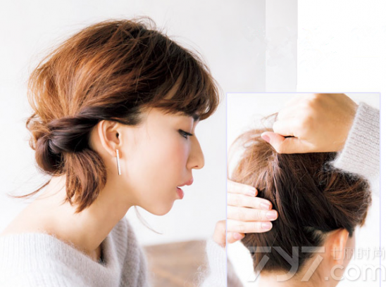 时尚看点:侧边扭转发辫的这款短发扎发造型,不需要是搭配发饰也能提升整个人的气质,只需简单扭转头发就能打造出不一样的美感。