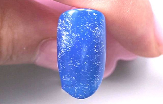 底油后,用蓝色甲油打底后照干。