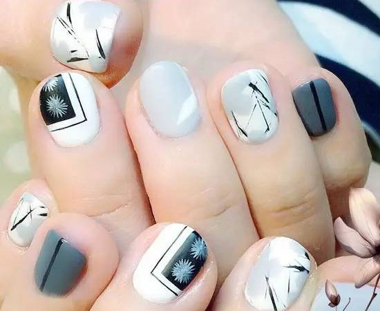 浅灰系的美甲图案比较适合手白的姑娘,下面是六款不同风格的图案推荐。