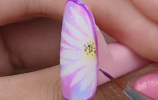 用小笔沾取黑色甲油胶在花芯处点出小点,作为花蕊。