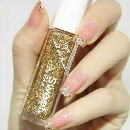 烫金色拉线笔,非常高贵的颜色,也非常百搭,可以搭配任何颜色的指甲油。闪闪亮亮 。百搭款的法式美甲