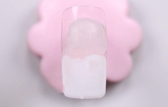 完成底胶后,用白色甲油胶为甲面的前半部分上色。