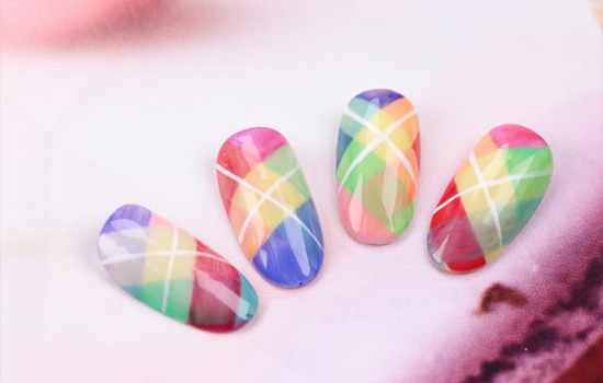 格纹是大家心目中万能的图案哦,无论什么时候都不会过时,都会很潮的~今天小编教给大家一款多彩格纹美甲,将百搭的格纹画在手上吧!