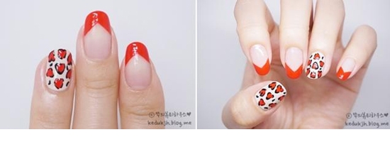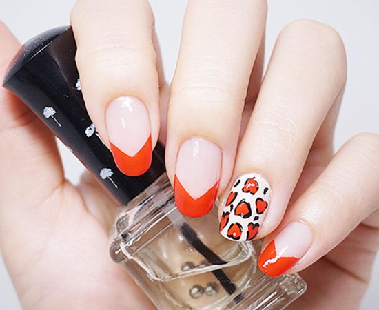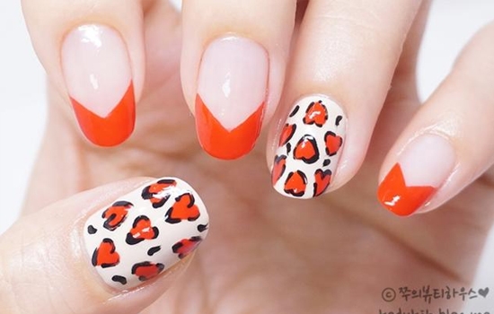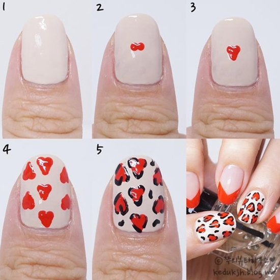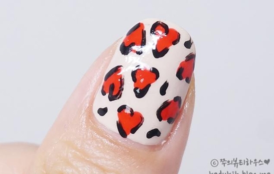 这款法式的豹纹美甲,制作过程非常简单,颜色不像一般的豹纹那样性感,这里是略带小清新的,而且图案形状也结合了心形图案,也算是比较日常百搭款美甲。