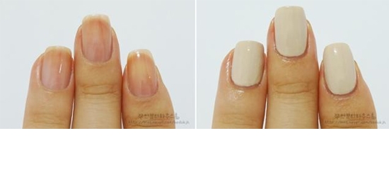 STEP1:直接省去打底步骤,等底油干透后,全部指甲都涂上裸色打底。选择当然作为疯狂粉丝来说,你可以选择使用原版的黄色作为底色。上面已经解释过理由了。