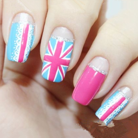 米字旗美甲完成图