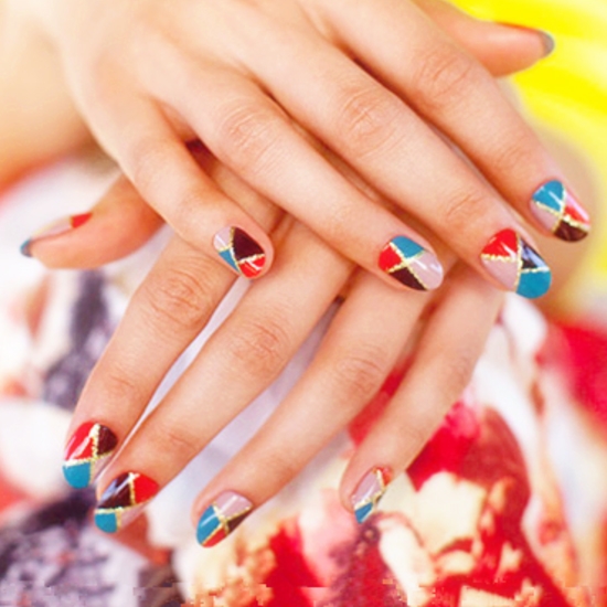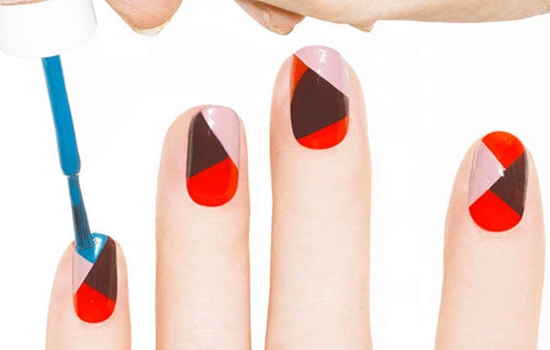 几何美甲怎么做,几何美甲教程,撞色美甲教程