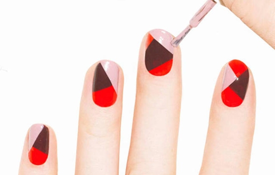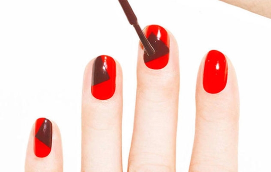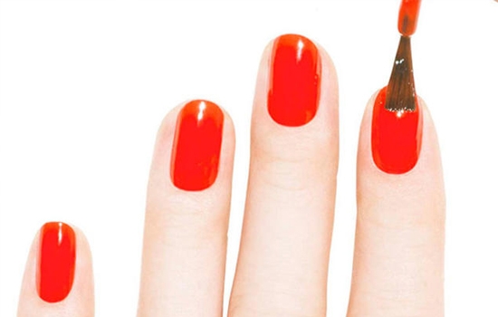 STEP1:首先在整个指甲上涂抹一层红色的甲油,等待其变干。