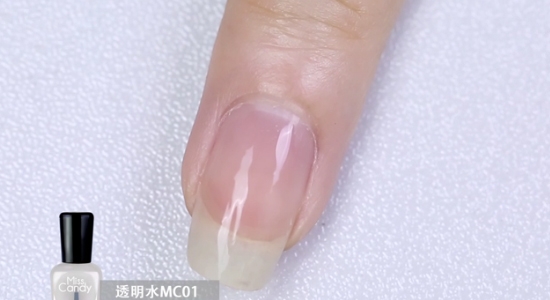 STEP1:我们先再指甲上均匀的涂抹miss candy透明甲水;