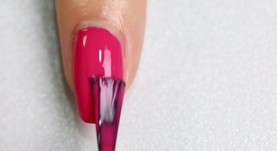 STEP7:大约1分钟等指甲油干掉后,再次涂上透明指甲水就可以了。