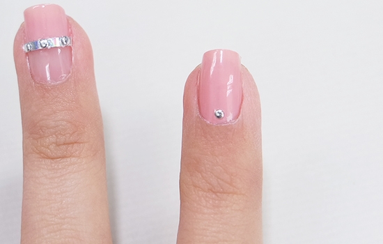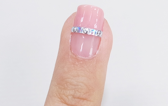 STEP6:在中指的细长条上贴上3个小圆点水钻。