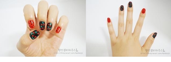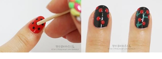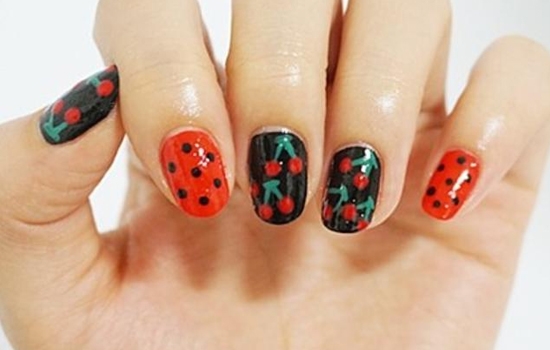看到樱桃美甲,大家的第一感觉是不是会想到卡通和可爱呢?下面,要跟大家分享一款脱离大家第一印象的不同风格的美甲,以红色和黑色的经典搭配的甜美、时尚的樱桃美甲,快来学习吧!