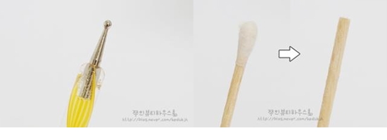 STEP3:准备圆头的美甲工具,如果没有的话,可以那个棉签,把棉花部分去除就行。