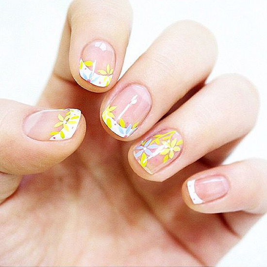秋天能想到的除了黄色调还有菊花,这款美甲正式运用了这两个元素,黄色的小菊花朵,简单清新,在暖秋季节里涂上,也不失为自己的指尖增添了一笔应景的点缀。