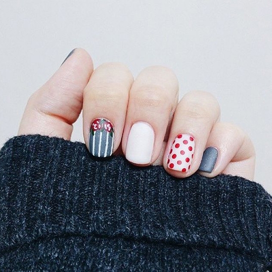 韩式小清新圆点美甲