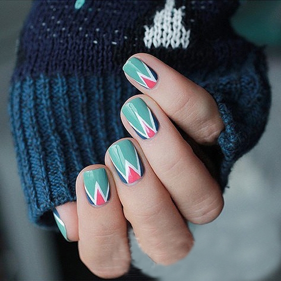 绿色系的几何美甲,加上玫红色做点缀,一款文艺气息十足的秋季美甲诞生啦,绿色系是最显手白的颜色,在秋冬季里涂上这样的美甲,手不想白都难!