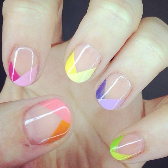 透明的底色,把指甲显得更光亮,再用两种相近颜色搭配,以交叉的方式涂在指甲尖上,一款创意的法式美甲完成啦,这款美甲也是很显手白的一款美甲。