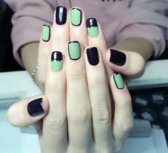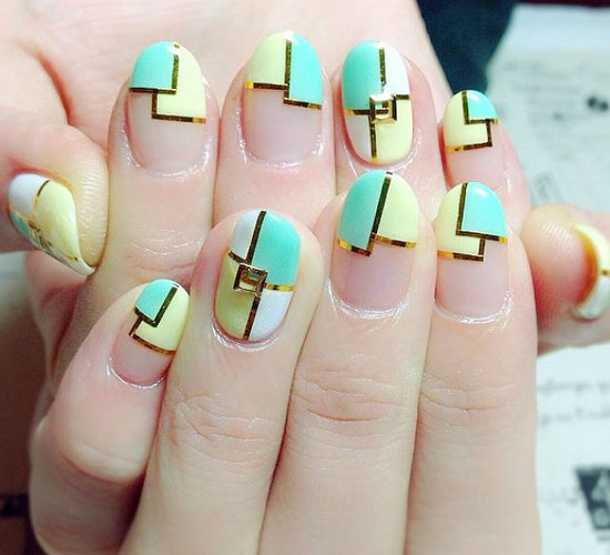 几何美甲怎么做,几何美甲教程,撞色美甲教程