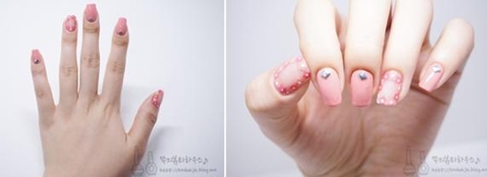 STEP2:选择3个手指涂满裸粉色作为底色。