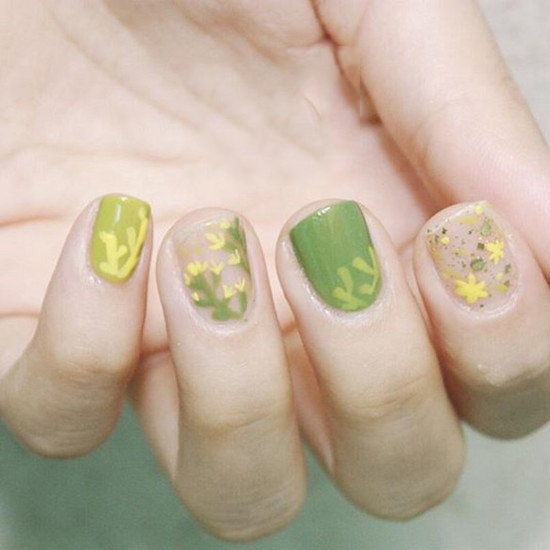 秋季人会显得白一点,橄榄绿则会显得你更白,特别是这种偏草绿色的橄榄绿。所以也是很适合秋季的指甲颜色。