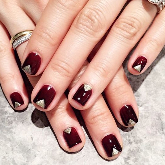酒红色的妆容是秋季的流行趋势,酒红色的指甲油自然也是不能缺少的。酒红色也是很显手白的颜色。