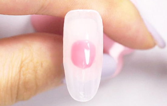 第一步:把白色甲油胶用封层调匀,为甲面薄薄的刷上一层,照灯。为甲面刷上一层封层,照灯。用小笔沾取多多些粉红色甲油胶,在甲面的中间画一个圆圈,暂时不要照干哦!