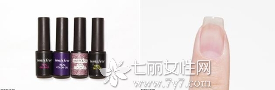 STEP1:准备紫色和多彩亮片甲油胶,先涂好透明底油。