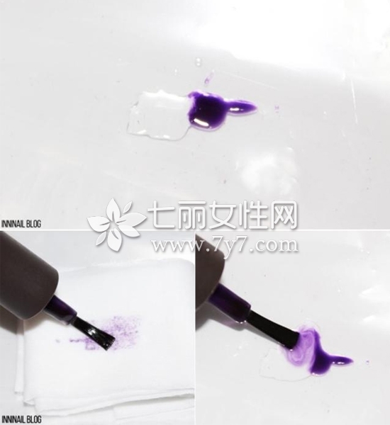 STEP2:将透明盒深紫色甲油胶各倒出一些相互调和。