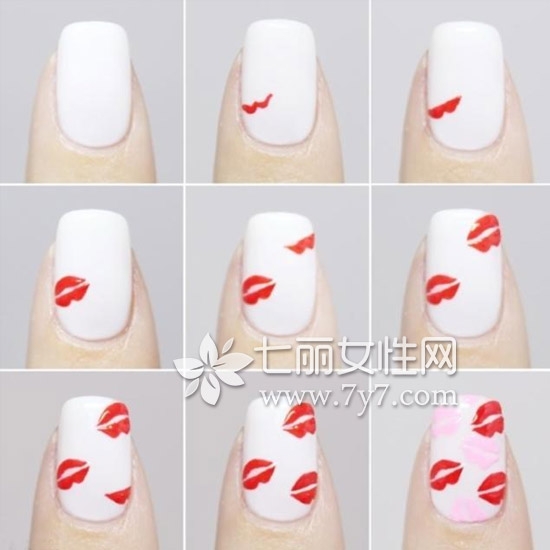 根据你自己的甲面大小画好所有红唇,最后涂上一层透明顶油就行了。