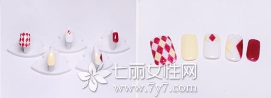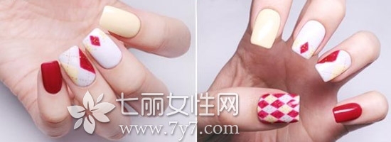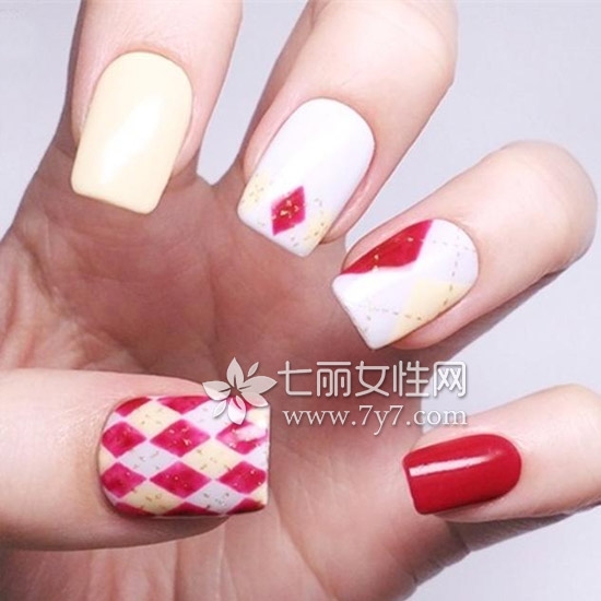 经典的菱形格子,使用了充满文艺范的红色和浅黄色的搭配。冬季除了文艺范的大衣、袜子,美甲也能搭配的文艺范哦。喜欢文艺的妹子快来学习这款美美的菱形格子美甲吧!