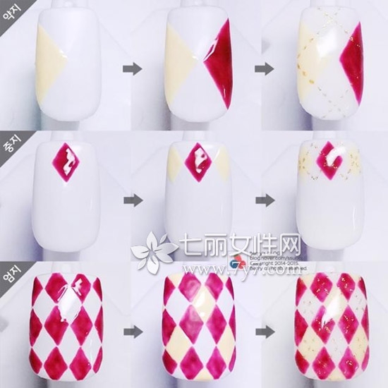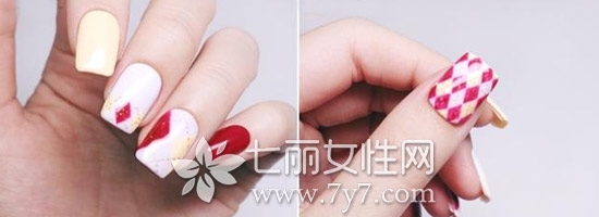 菱形美甲图片画法?经典的菱形格一直是许多时尚品牌所钟爱的图形,大到衣服包包,小到袜子,都充满了大气和文艺范,今天让指甲也来挑战下!