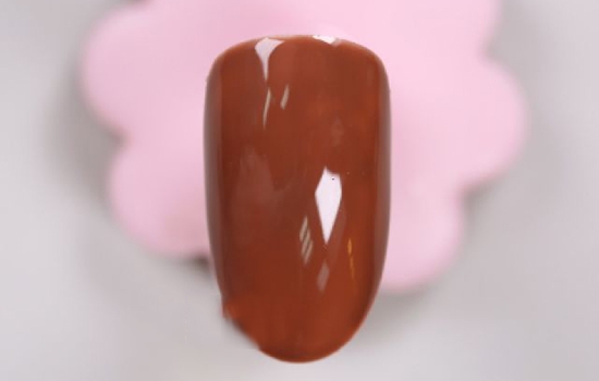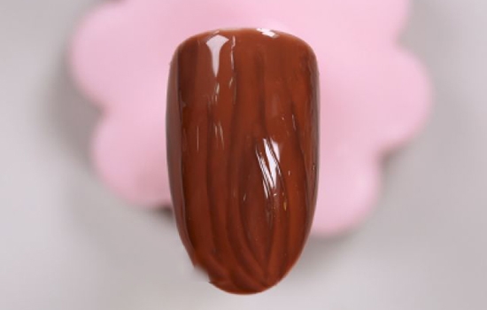 第四步:为甲面刷上一层棕色甲油胶,照灯。要重复上色哦~