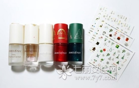 临近圣诞,各家品牌都已经推出了各种应景产品,首先需要做的是挑选好你钟意的甲油和贴纸。下面是韩国博主这次用到的悦诗风吟家的甲油和贴纸。
