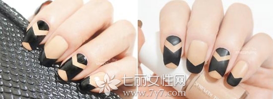 几何美甲怎么做,几何美甲教程,撞色美甲教程