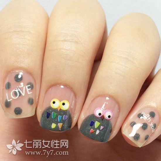 美甲和贴纸的结合,让猫头鹰图案更简单化了,画出来的图案也很精致,适合不太会话图案的人,具体的步骤让我们一起来试试吧!