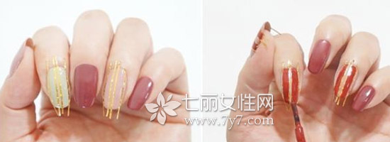几何美甲怎么做,几何美甲教程,撞色美甲教程