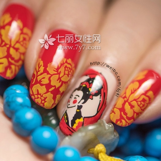 红色的美甲,很容易搭配出节日的感觉,中国红本来就是给人喜庆的感觉,所以这里的几款红色花朵美甲很适合节日里涂上。